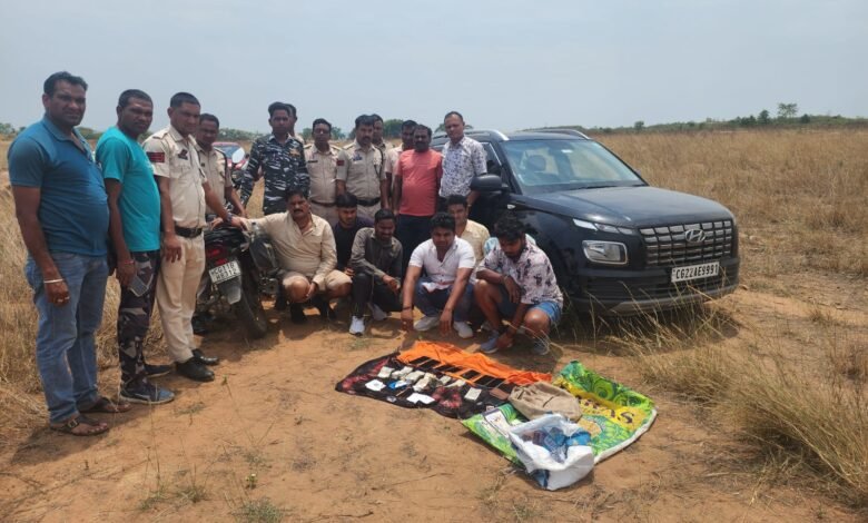 आज दिनांक 27.04.25 को थाना प्रभारी सरसीवा को मुखबिर से सूचना मिला कि अमलीडीह के नर्सरी के पास जुआरियों के द्वारा ताश पत्ती से हारजीत का जुआ खेल रहें है, सूचना पर थाना सरसीवा के द्वारा जुआ फड़ पर दबिश दिया गया, 07 जुआरी पुलिस के हत्थे चढ़े शेष जुआरी जंगल का फायदा उठाकर भाग गए, जुआरी गण – दामोदर साहू, राम साहू, नंदलाल यादव, राकेश कुमार कोल्ता, किशोर कोयल, महावीर साहू, और जितेन्द्र कुमार साहू पकडे गए, जिसके पास एवं फड से 52 पत्ती ताश नगदी रकम 2,13,820 रूपये, एक काला रंग का वेन्यू कार क्र. CG22 AE 9991 कीमती 580000 रूपये , एक काला रंग का प्लेटिना मोटर सायकल क्र. CG11 BH 8312 कीमती 25000 रूपये, पानी पाऊच की बोरी खुला हुआ जिसमें 20 नग पानी पाऊच भरा एवं एक नग तिरपाल जुमला 8,18820 रूपये जप्त कर आरोपियो के विरूद्ध अपराध क्रमांक 127/2025 धारा 3(2)छत्तीसगढ जुआ(प्रतिषेध)अधिनियम 2022 अपराध पंजीबद्ध किया गया है।