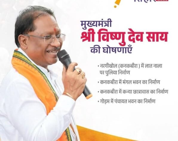 मुख्यमंत्री श्री विष्णु देव साय ने कनकबीरा में ग्रामीणों से संवाद के साथ ग्रामीणों की मांग पर कनकबीरा के आश्रित ग्राम नरगीखोल लात नाला पर पुलिया निर्माण, कनकबीरा में मंगल भवन निर्माण,कन्या छात्रावास और गोड़म में पंचायत भवन निर्माण की घोषणा की।