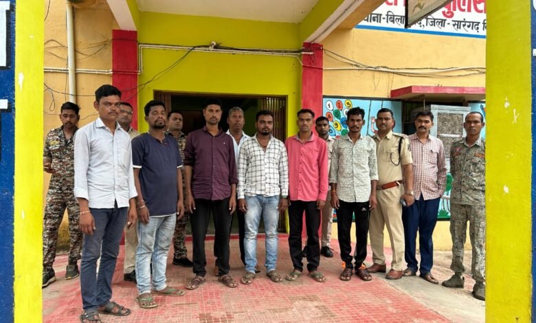 सारंगढ़ खबर———श्रीमान पुलिस अधीक्षक अंजनेय वार्ष्णेय के निर्देशन पर तथा अतिरिक्त पुलिस अधीक्षक निमिषा पांडे अनु.अधि. पुलिस विजय ठाकुर के मार्गदर्शन थाना प्रभारी उप निरी शिवकुमार धारी के नेतृत्व में ट्रैक्टर ड्राइवर को खंभे से बांधकर मारपीट करने वाले 07 आरोपी गिरफ्तार,सातों आरोपी को भेजा गया न्यायिक रिमांड पर