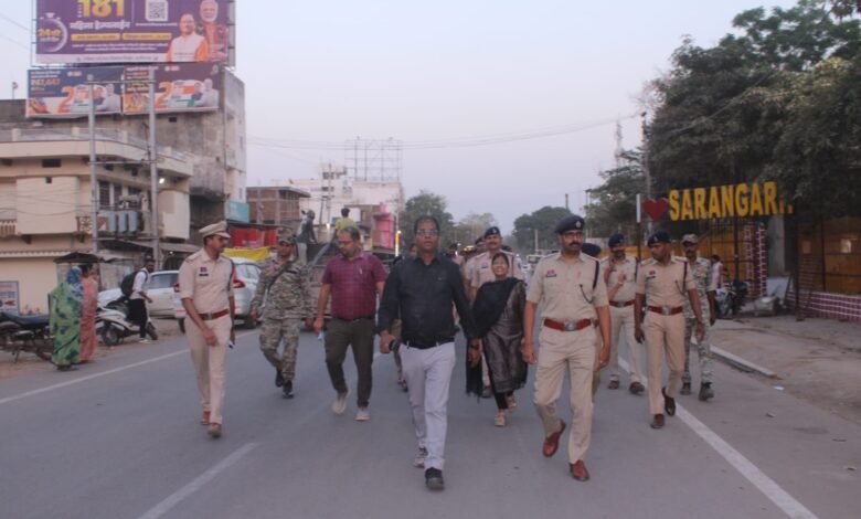 कलेक्टर डॉ संजय कन्नौजे एवं पुलिस अधीक्षक की अगुवाई में जिला मुख्यालय सारंगढ़ में सिटी कोतवाली थाना से भारत माता चौक, नंदा चौक मुख्य बाजार होते हुए तुर्की तालाब तक प्रमुख चौक-चौराहों और भीड़भाड़ वाले इलाकों से होकर गुजरा।